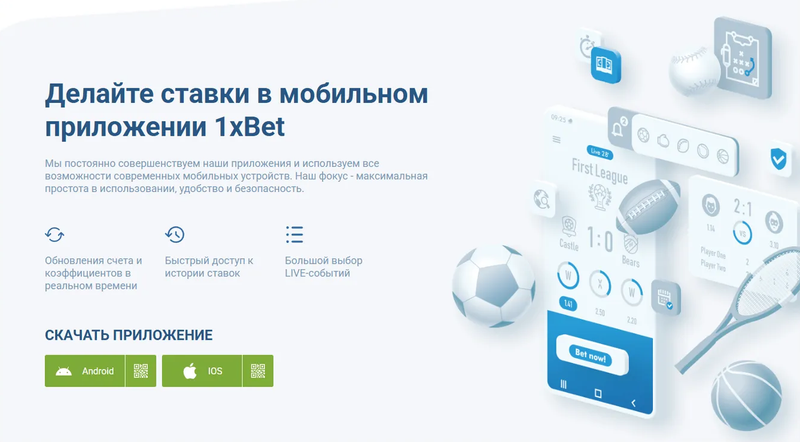 | Бонусы для игроков | 100% на первый депозит, бонус на экспресс, кэшбэк, “Обыграй 1xbet”, “счастливая пятница”, промокоды, турниры и т.д. |